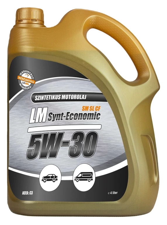Az LM SYNT ECONOMIC 5W-30 Ultramodern, szintetikus, hosszú csereperiódusú, alacsony hamutartalmú motorolaj. Felhasználható Diesel Részecskeszűrővel, illetve katalizátorral ellátott dízel és benzines személy- és kishaszongépjármű motorokhoz! A legmodernebb LOW SAPS formula alkalmazásával (kevesebb szulfát hamuval, kénnel és foszforral) garantálja a kiváló kenési paramétereket és csökkenti a szelepek elhasználódását, és a korom lerakodását! Az LM SYNT ECONOMIC 5W-30 csökkenti az üzemanyag és olajfogyasztást, meghosszabbítja a két olajcsere közti futásteljesítményt és védi a környezetet.